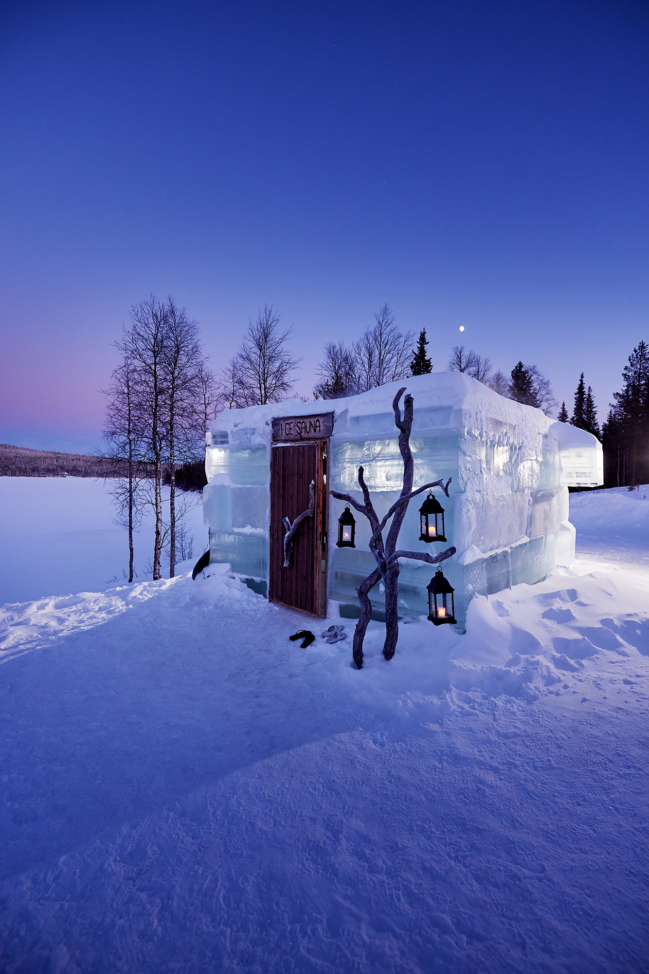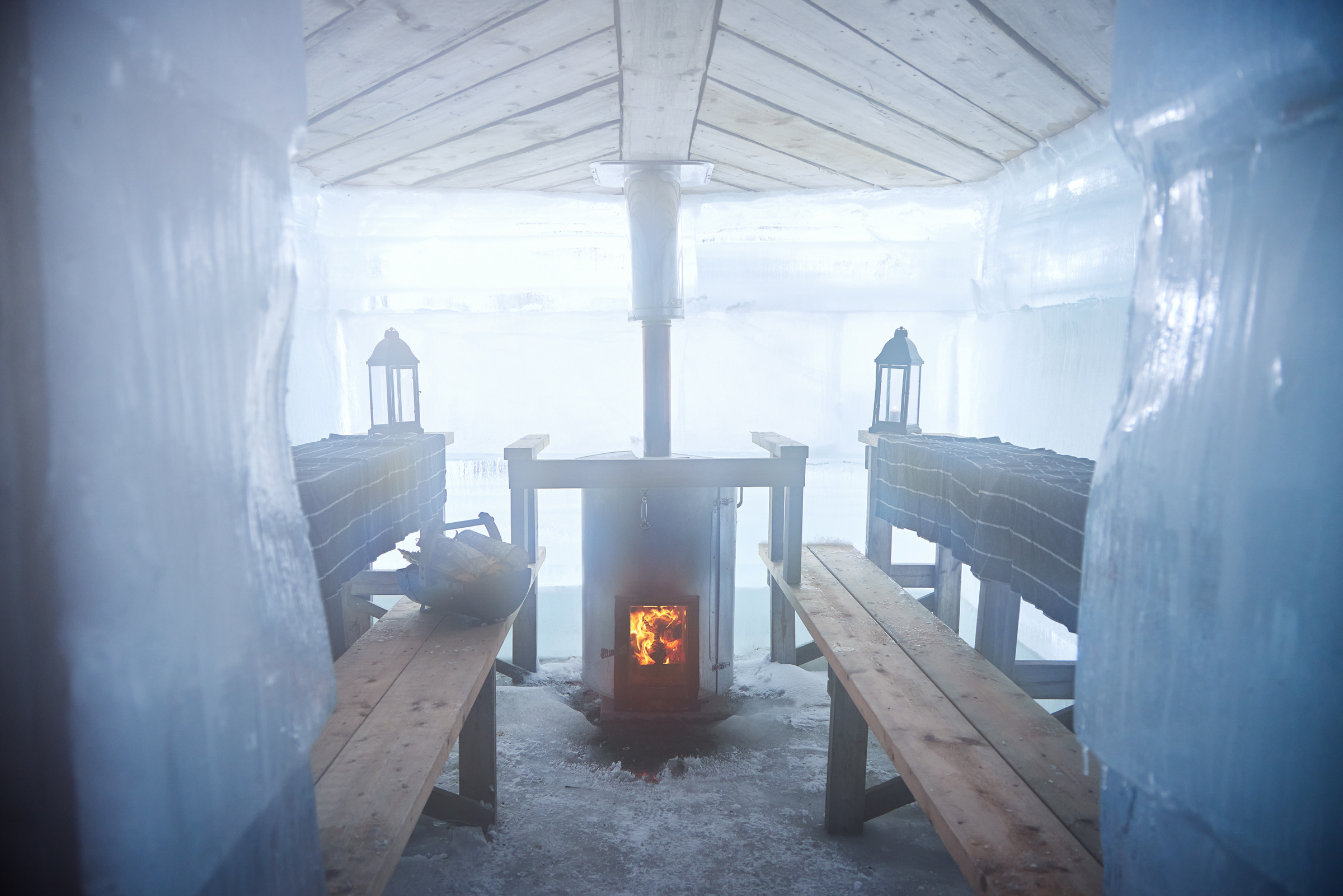 One highlight of this experience is the unique ice-sauna. The sauna itself is built from huge ice-blocks, the benches are of wood, so you can sit and relax while enjoying the very moist heat of this special sauna. And yes, it is a warm sauna, even if built of ice.